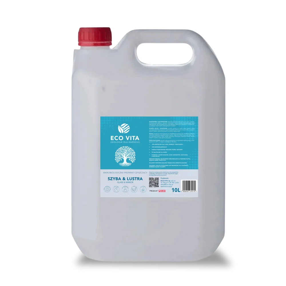 Eco-Vita oferuje zaawansowany preparat do mycia i czyszczenia powierzchni gładkich, szklanych, lustrzanych oraz ze stali nierdzewnej. Nasz preparat skutecznie usuwa zabrudzenia, pozostawiając powierzchnie czyste, lśniące i bez smug.