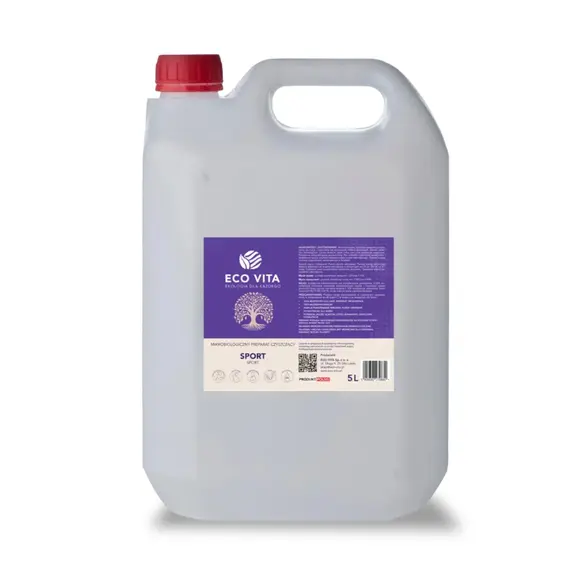 ECO-VITA SPORT to mikrobiologiczny preparat czyszczący stworzony z myślą o czystości i higienie w strefach aktywności fizycznej. Idealny do codziennego użytku w siłowniach, salach fitness, halach sportowych, gabinetach masażu, SPA, przebieralniach, strefach odnowy biologicznej i innych obiektach sportowych. Dzięki naturalnym enzymom, biosurfaktynom i pożytecznym mikroorganizmom skutecznie usuwa pot, tłuszcze, białka i zabrudzenia organiczne – bez ryzyka dla ludzi, zwierząt i środowiska.