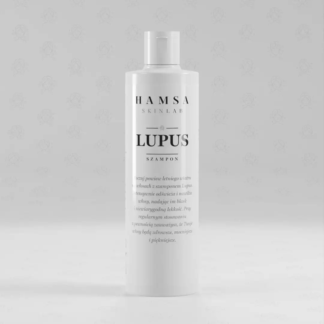 Szampon LUPUS oparty jest na starannie dobranych składnikach aktywnych o potwierdzonym działaniu pielęgnacyjnym. Hydrolizowane proteiny pszenicy wzmacniają włosy od wewnątrz, poprawiają ich strukturę, zwiększają objętość i nadają im naturalny połysk. Ekstrakt z liści aloesu działa nawilżająco i kojąco, przywracając komfort nawet najbardziej wrażliwej skórze głowy. Ekstrakt z rumianku łagodzi podrażnienia i wspomaga regenerację, a pantenol (prowitamina B5) chroni przed przesuszeniem, zmiękcza i wygładza włosy.