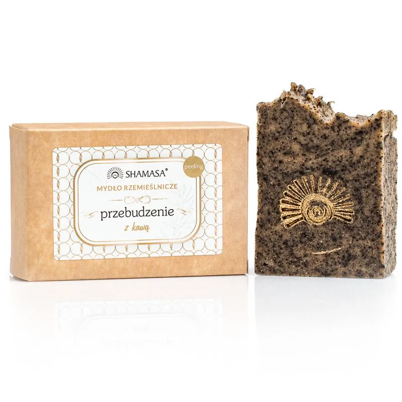 PRZEBUDZENIE to mydło rzemieślnicze z kawowym peelingiem.