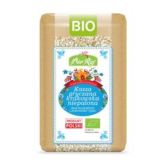 SKŁADNIKI ekologiczna kasza gryczana krakowska niepalona 100 %. OPIS Ekologiczna kasza gryczana krakowska otrzymana jest z obłuszczonego i pokrojonego ziarna gryki niepalonej. Ma łagodny i delikatny smak. Najczęściej stosowana jako dodatek do zup, dań jednogarnkowych, pasztetów, kotletów, past...