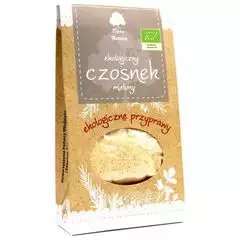 SKŁADNIKI czosnek suszony* 100 %. (*certyfikowany składnik ekologiczny) OPIS Popularna i znana przyprawa do wszelkich potraw, smacznej domowej kuchni. Czosnkiem przyprawia się sery, sałatę, potrawy z grzybów, mięso, dziczyznę, ryby i sosy. Poprawia on smak białego sera, jogurtów oraz pieczywa....