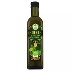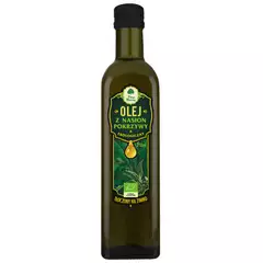 SKŁADNIKI ekologiczny olej z zarodków rzepaku tłoczony na zimno. OPIS Olej tłoczony na zimno, wyłącznie za pomocą środków mechanicznych z klasyfikowanych najlepszych ziaren, pozbawionych gorzkiej okrywy nasiennej. Wysoka zawartość kwasów tłuszczowych omega-3. Zawarty w oleju kwas...
