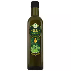 SKŁADNIKI olej z SOJOWY* 100 %. (* certyfikowany składnik ekologiczny) OPIS Tłoczony na zimno. WARTOŚĆ ODŻYWCZA W 100 ml Wartość energetyczna: 3701 kJ/884 kcal Tłuszcz: 100 g w tym kwasy tłuszczowe nasycone: 16 g Węglowodany: 0 g w tym cukry: 0 g Błonnik: 0 g Białko: 0 g Sol: 0 g...