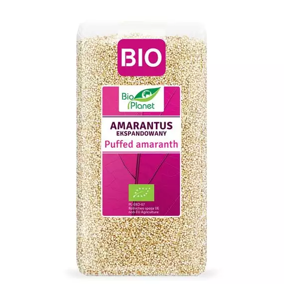 Ekologiczny amarantus jest jedną z najstarszych i najbardziej pożywnych roślin (pseudozbóż) uprawianych na świecie. Amarantus ekspandowany (popping) jest gotowym produktem do bezpośredniego spożycia. Polecamy jako dodatek do jogurtu, MLEKA, napoju roślinnego, deseru, sałatki czy zupy krem. Idealny również do naleśników, ciasta, kotletów warzywnych lub jako panierka.