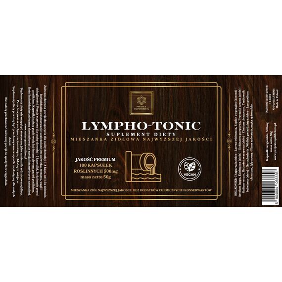 Masa netto: 50g "LYMPHO -TONIC [KAPSUŁKI] - SUPLEMENT DIETY - Mieszanka Ziołowa Najwyższej Jakości" jest oficjalnym suplementem diety, dopracowaną przez nas osobiście recepturą i został wytworzony z certyfikowanych ziół.