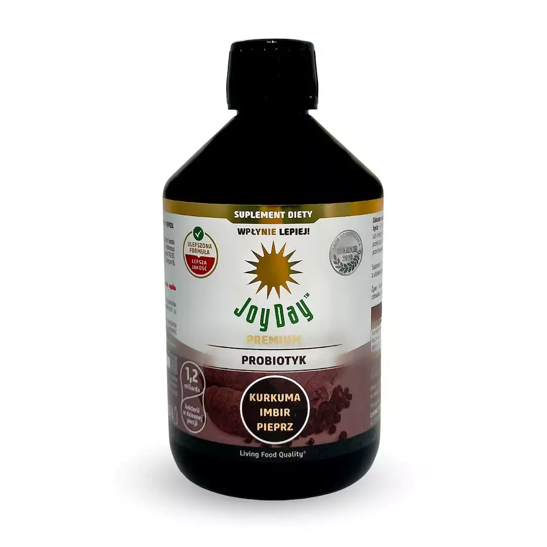 KONCENTRAT NAPOJU PROBIOTYCZNEGO KURKUMA IMBIR PIEPRZ BEZGLUTENOWY BIO 500 ml - JOY DAY