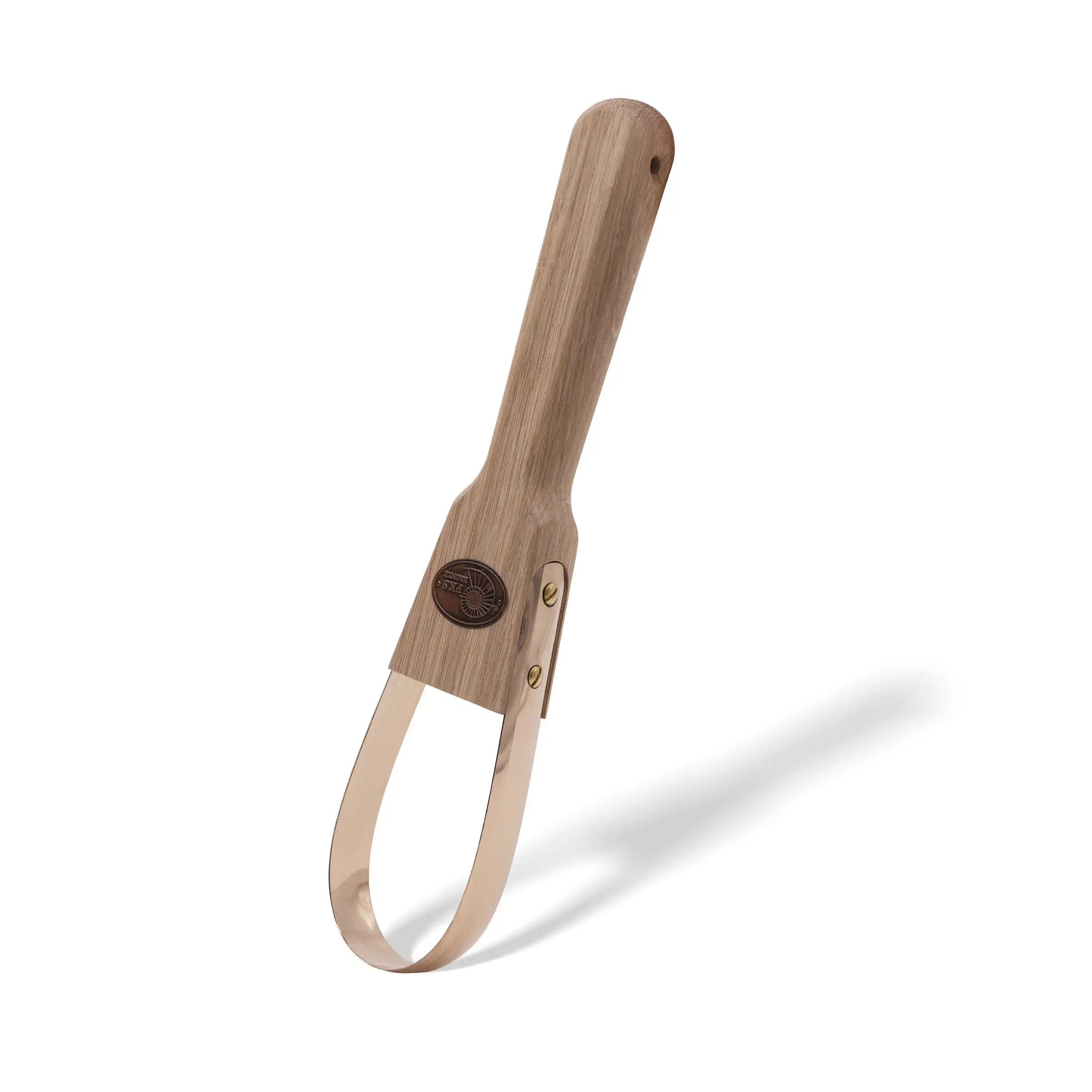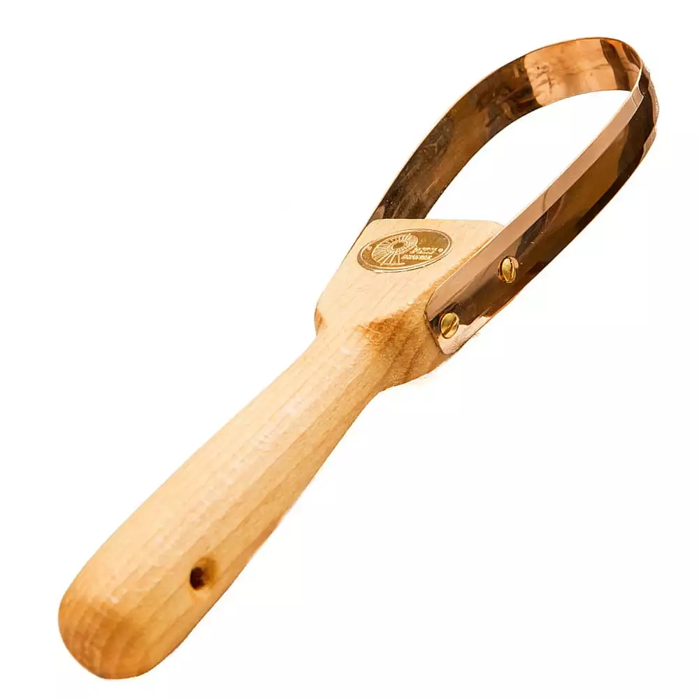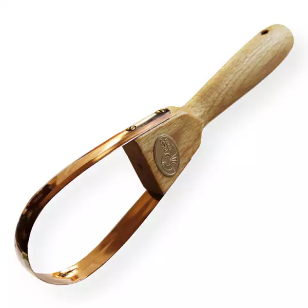 Ostrze wykonane z brązu (stop miedzi z niewielką domieszką cyny - łączy wytrzymałość z pozytywnymi właściwościami miedzi), trzonek zrobiony drewna bukowego europejskiego pochodzenia.