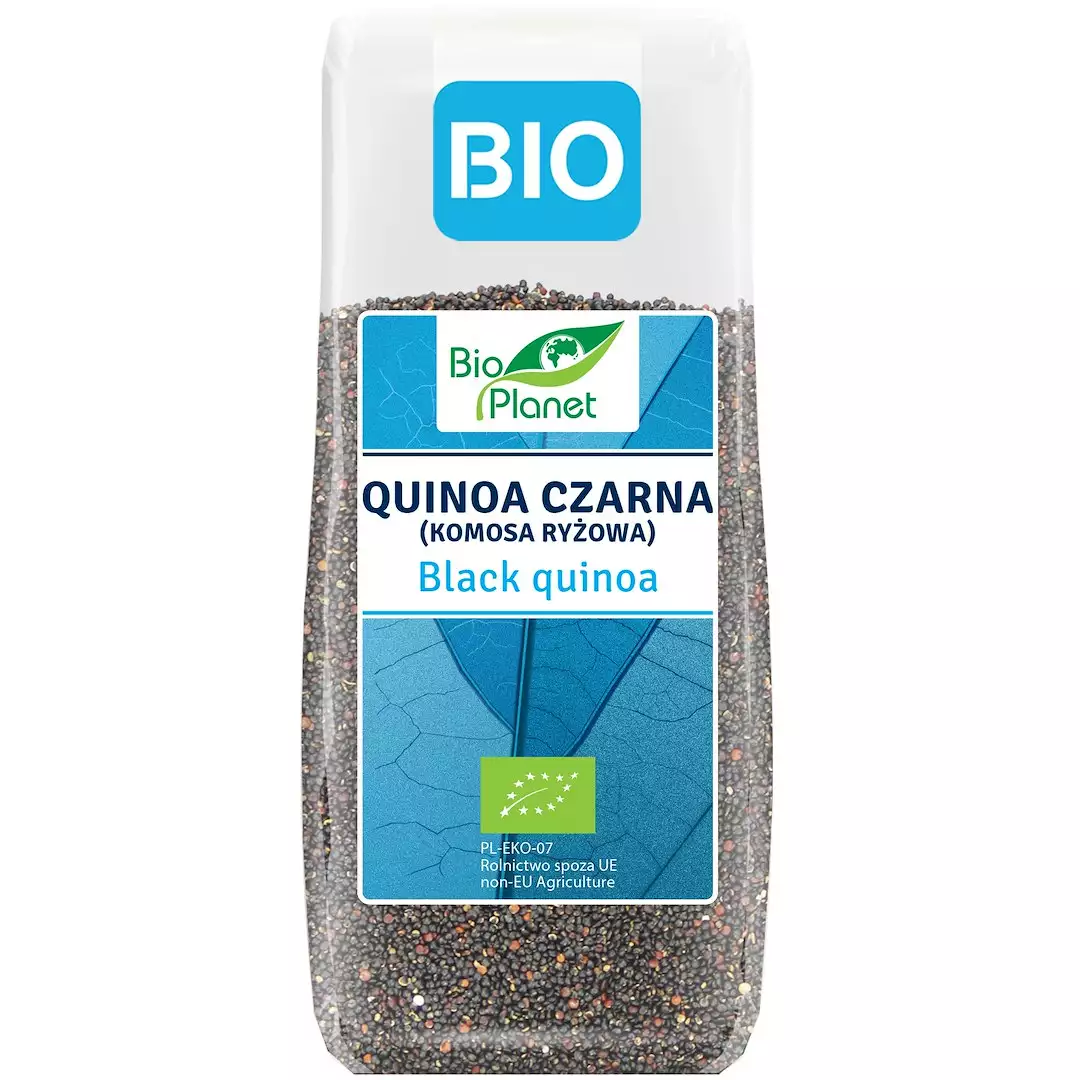 Ekologiczna quinoa czarna, znana również jako komosa ryżowa. Z powodzeniem zastępuje tradycyjne kasze lub makarony. Doskonale sprawdza się jako składnik zup oraz dodatek do warzyw, sosów, wypieków, a także deserów.