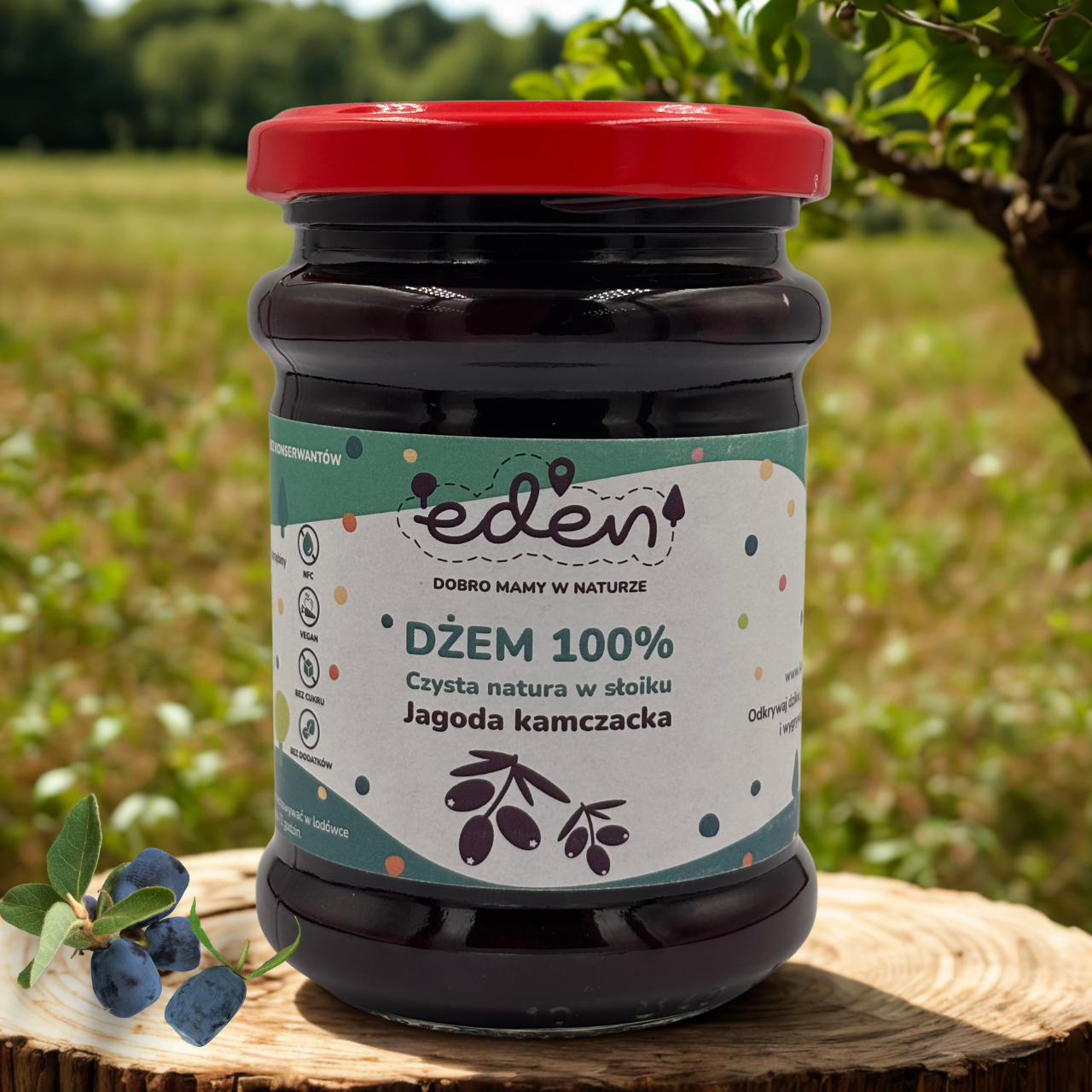 - Jagoda kamczacka – 270 g netto, składniki: 100% jagoda kamczacka, substancja żelująca - pektyny, sok z jarzębiny