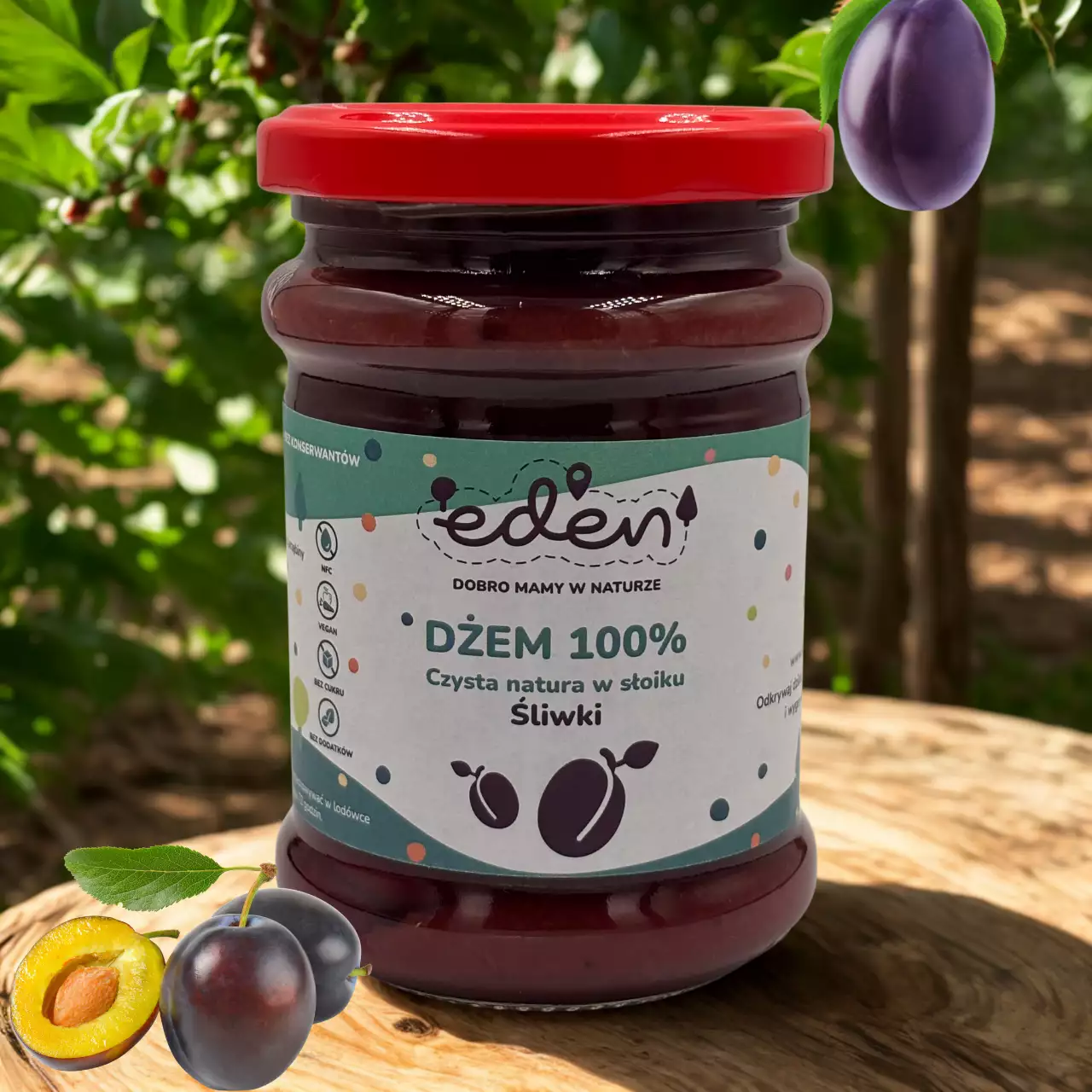 - Powidła śliwkowe – 270 g netto, składniki: 100% powidła śliwkowe, substancja żelująca - pektyny, sok z jarzębiny