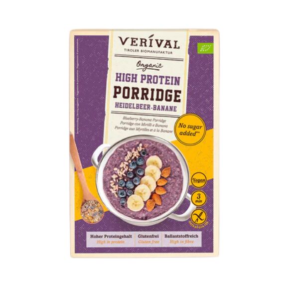 OWSIANKA PROTEINOWA Z BORÓWKĄ I BANANEM BEZ DODATKU CUKRÓW BEZGLUTENOWA BIO 350 g - VERIVAL
