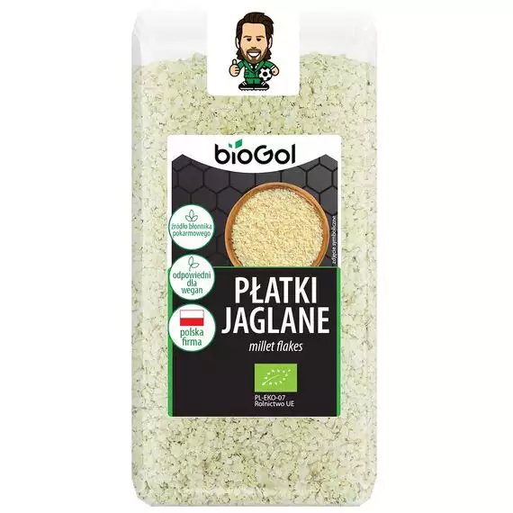 Ekologiczne płatki jaglane uzyskuje się z gniecionych ziaren prosa. Płatki jaglane to doskonała propozycja na codzienne śniadanie. Najlepiej smakują z dodatkiem jogurtu, napoju zbożowego oraz z owocami.